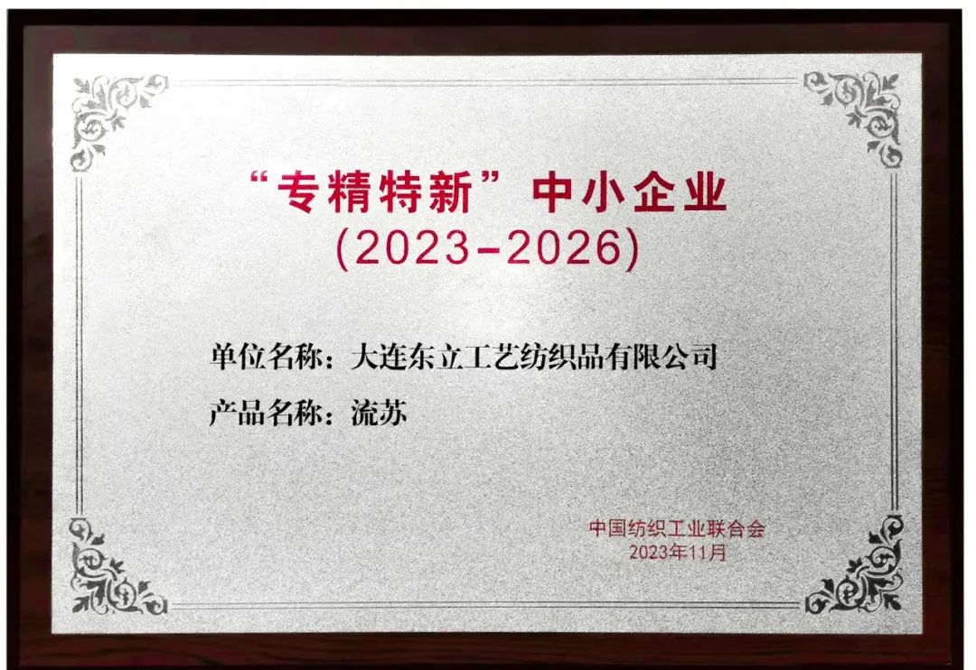 “2023年度十大類紡織創(chuàng)新產(chǎn)品”和2023-2026“專精特新”中小企業(yè)榮譽(yù)稱號(hào)。