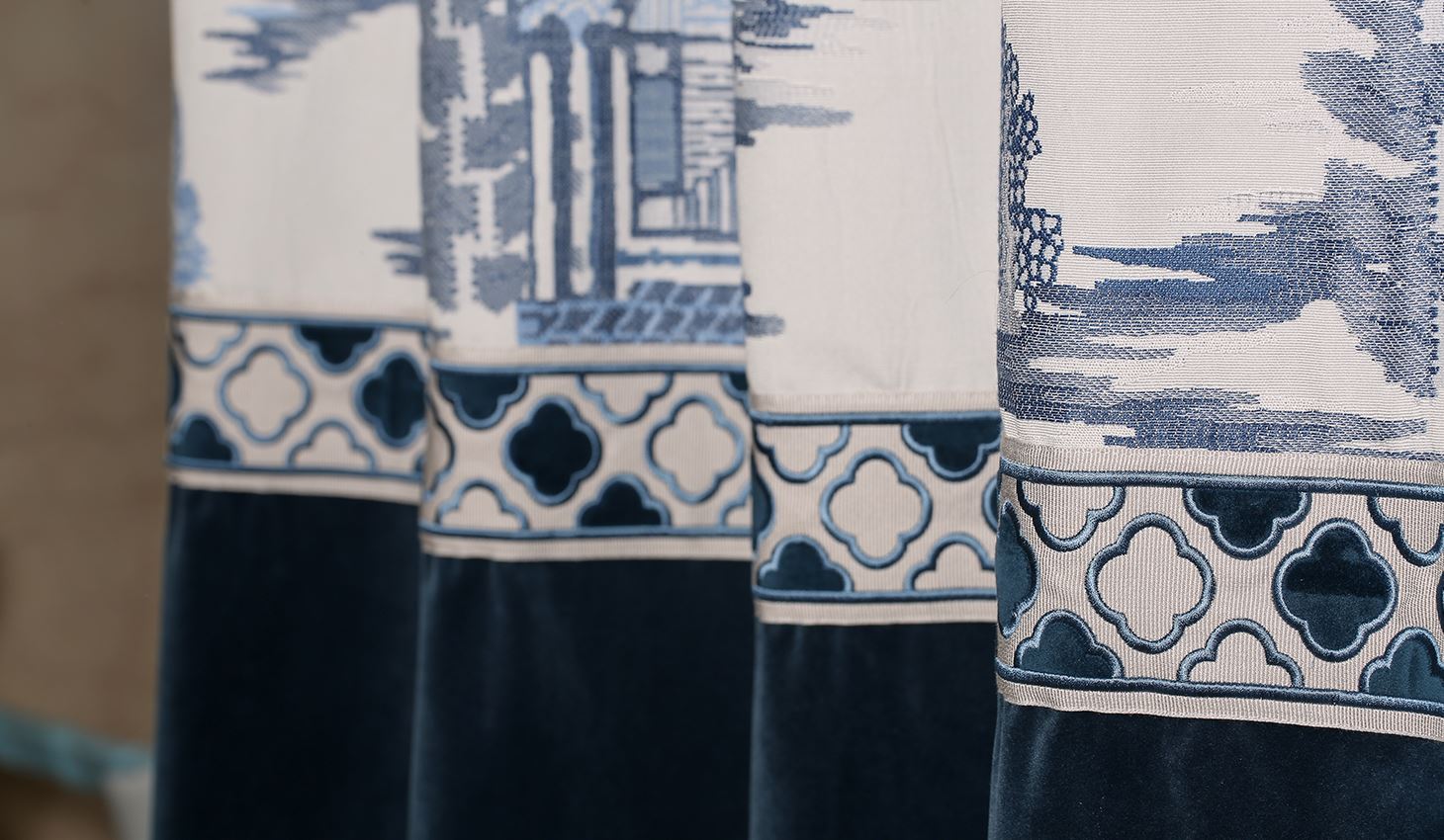 “憶江南”的設計隨方逐圓,提取“宮燈、馬頭墻、拱橋”等傳統(tǒng)建筑與古典園林元素,探索其表達的意境,通過木頭的雕刻、鏤空與刺繡工藝,以一種意象不到的方式,在傳遞出新中式寧靜氛圍的同時,增添了幾分現代線條的簡約魅力。